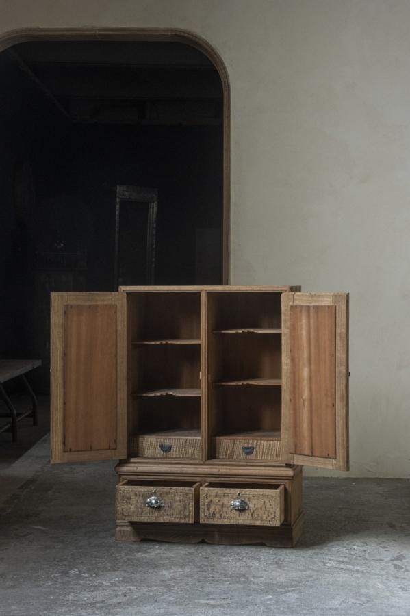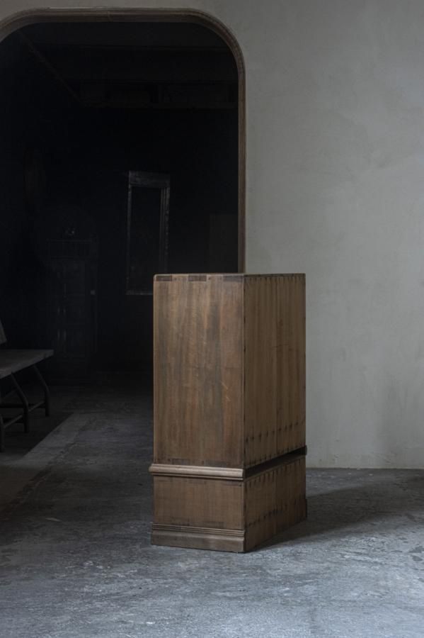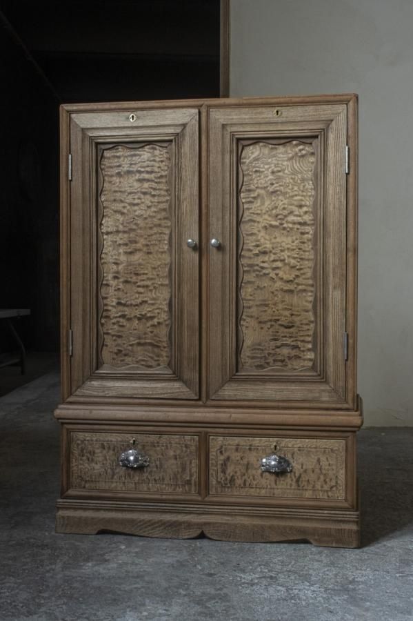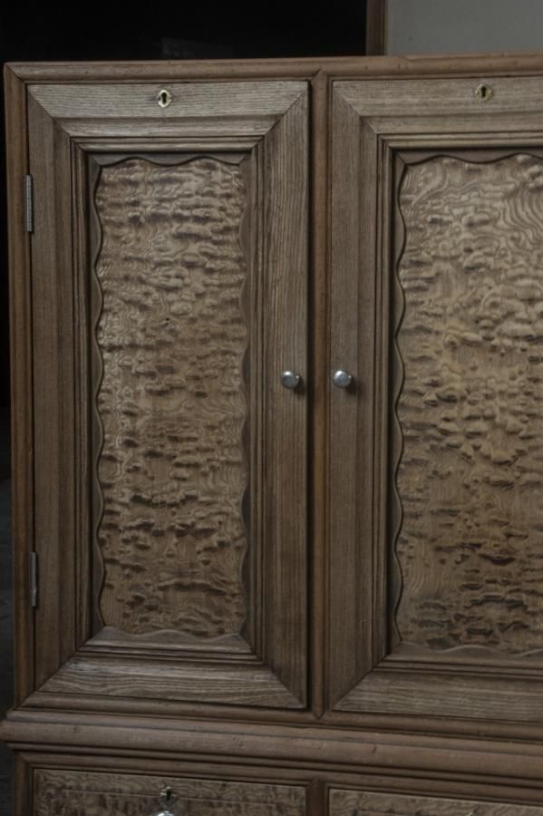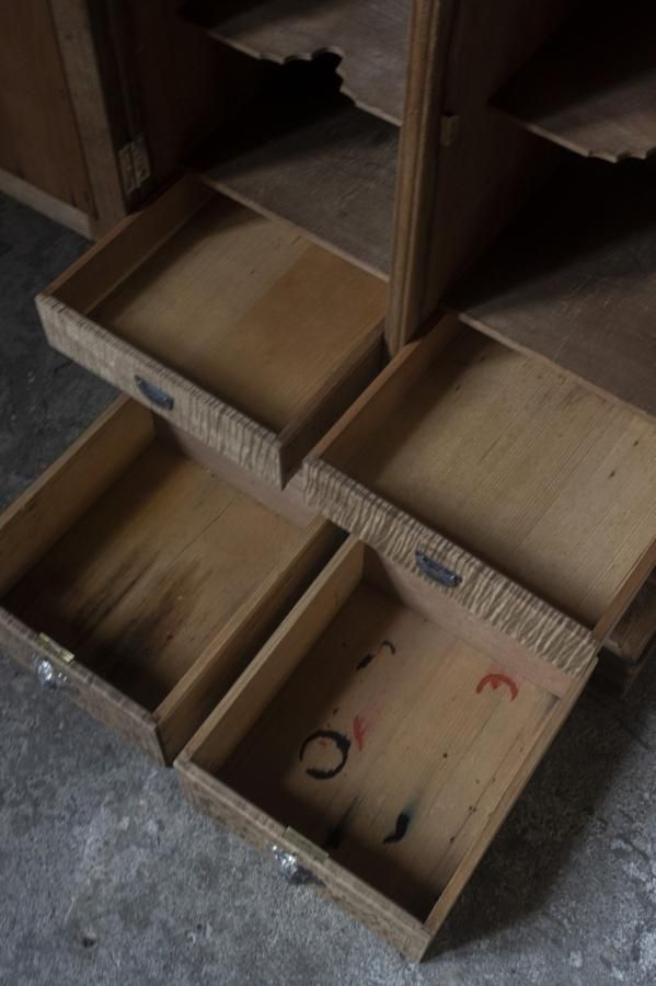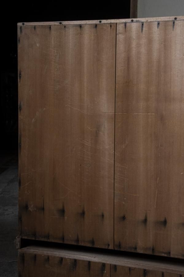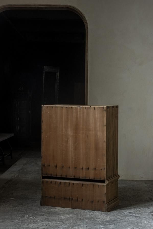 おそらく指物師の仕事と思われるつくり、メインの観音扉の板はゆるやかに丸みを帯び、