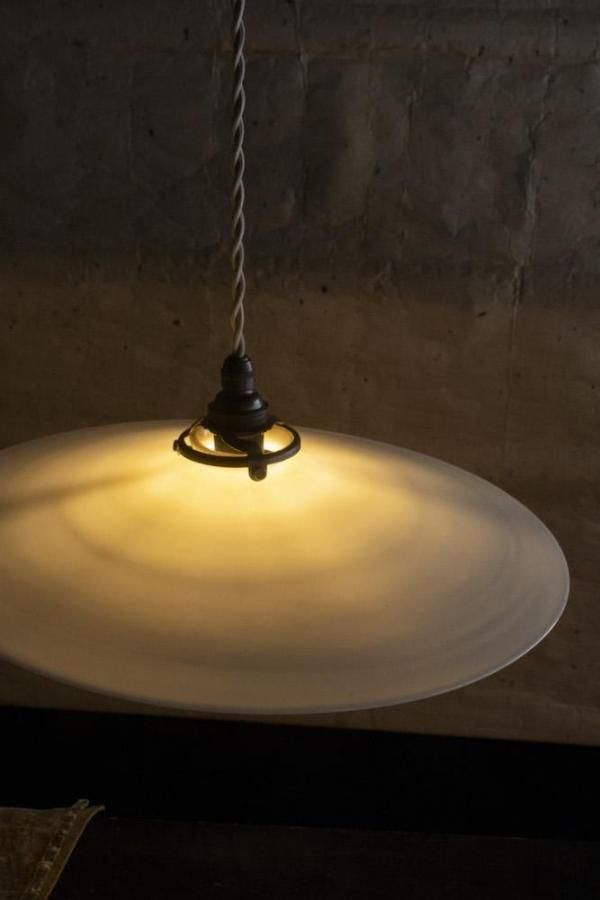 一般的な平笠よりも一回り大きく、手作業でつくられた独特なガラスの揺らぎがより強く、おおらかな造形に感じられます。ほとんど市場には出回らない特別な存在です。