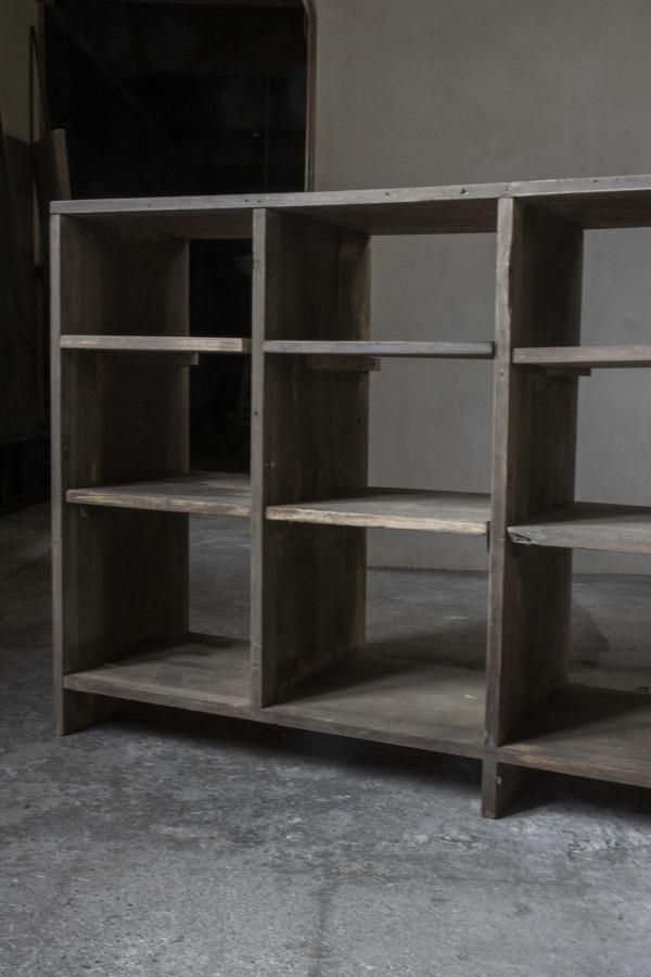 棚板の着脱が可能で格子状の展示空間は自由に組み替えて、高低のある陳列を楽しむことが出来ます。