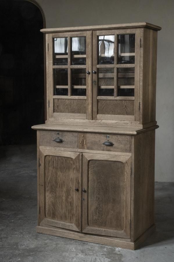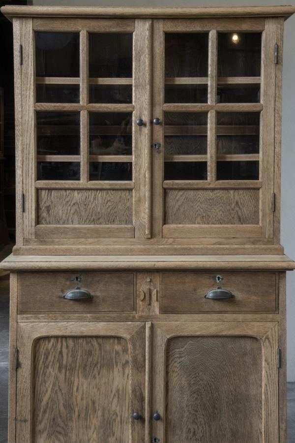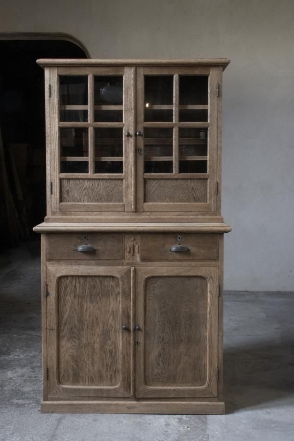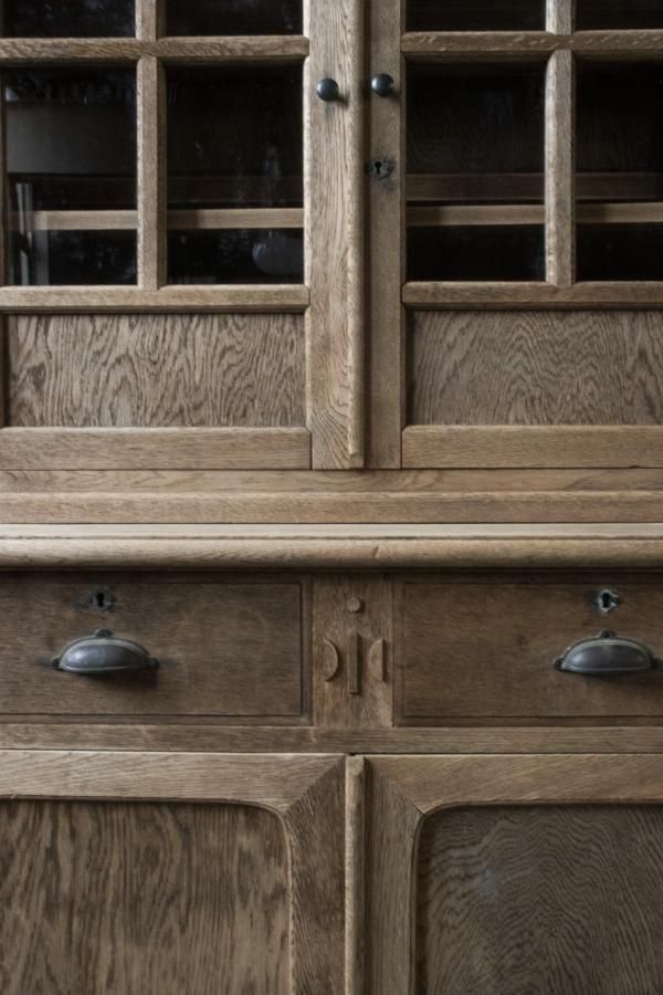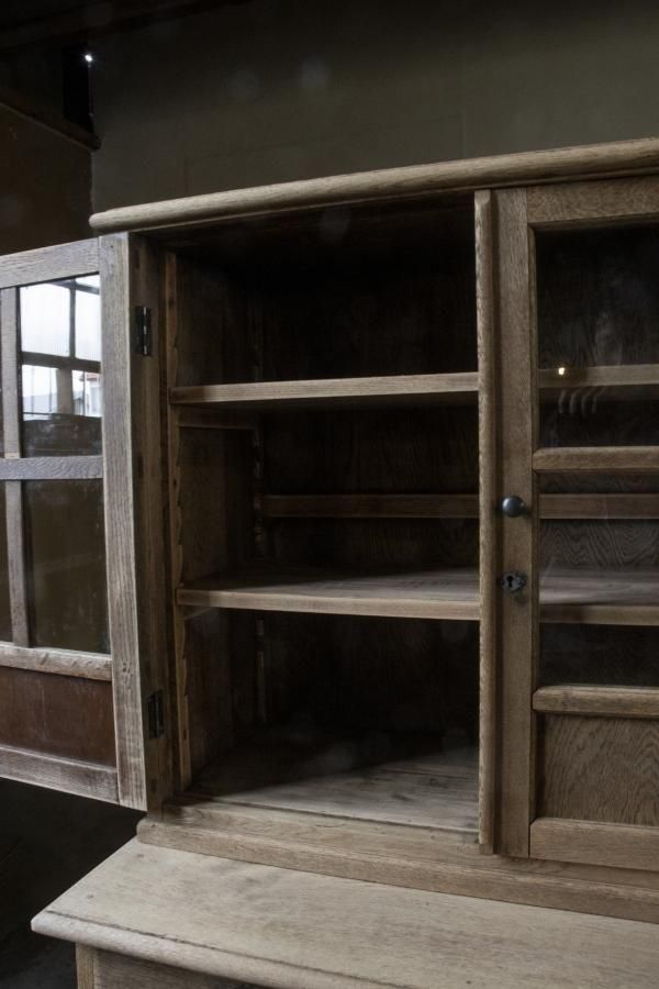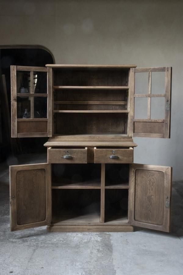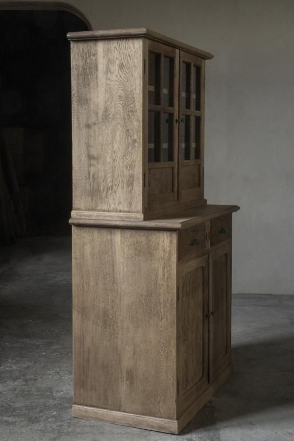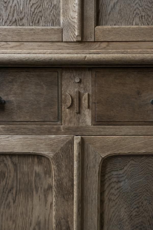 重厚で格式高くありながらも幾何学的な装飾や全体にどこか丸みを帯びた意匠は、温かく可愛らしい印象を与えます。通常の食器棚よりも二回りほど小振りでこれもこの家具を特別に見せている要因かもしれません。