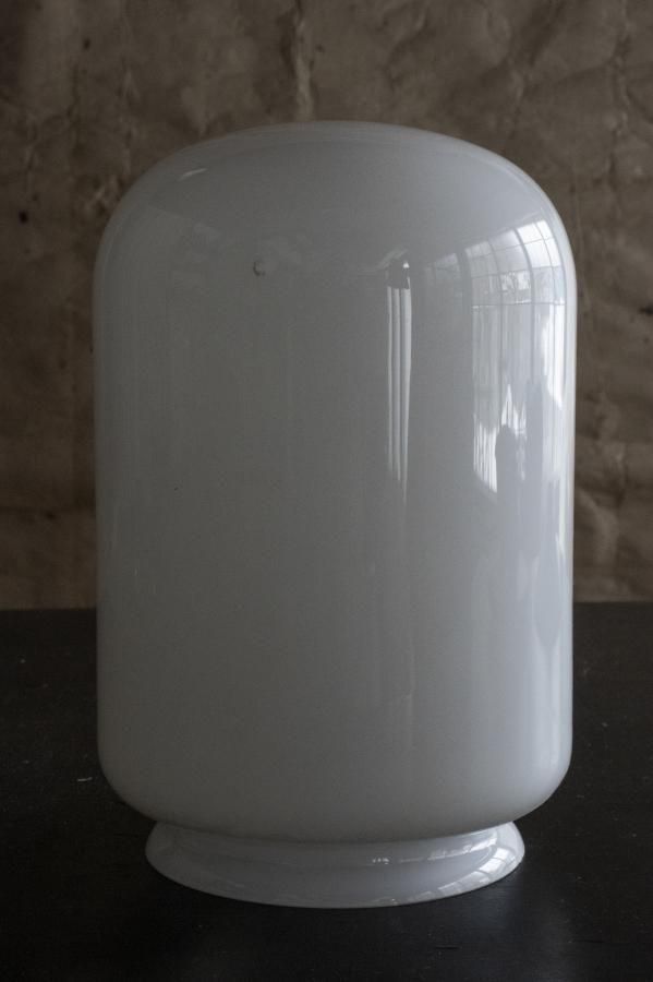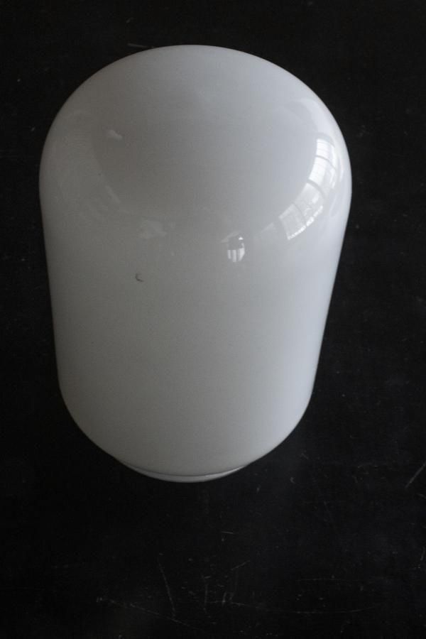 グローブ型の乳白硝子照明としては小振りで2-3灯の複数灯連ねると可愛らしいサイズ感。